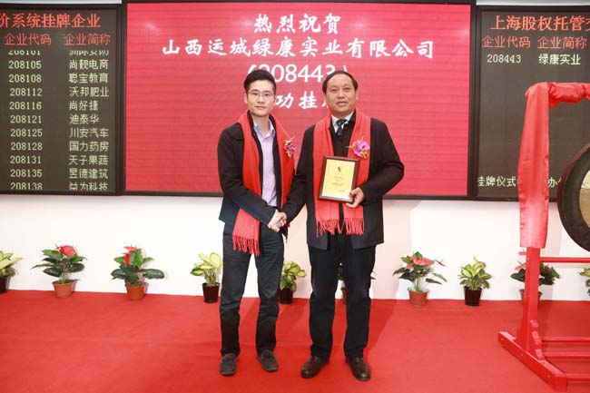 熱烈祝賀山西運(yùn)城綠康實(shí)業(yè)有限公司上海股權(quán)交易中心成功掛牌上市