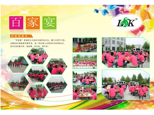 百家宴活動在綠康公司大院拉開帷幕,二十多張餐桌露天排開,從各地帶回來的特產一字擺開,單是看著都讓人垂涎欲滴,活動現(xiàn)場熱鬧非凡,同事們配合著音樂歌唱,娛樂,大家的熱情空前高漲,極具地方特色的小吃讓大家一飽口福。